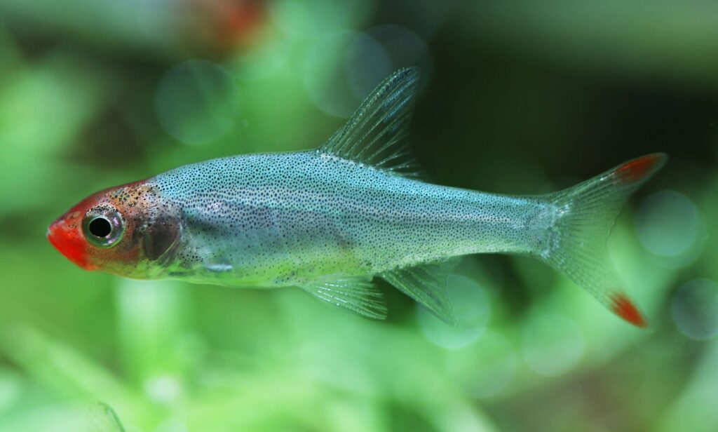 Cá Ngạnh Mũi Đỏ được biết đến với màu sắc rực rỡ và hình dáng đặc trưng. Tên gọi “mũi đỏ” bắt nguồn từ phần đầu của chúng, có màu đỏ tươi nổi bật trên nền thân màu bạc ánh kim. Thân cá thon dài, mảnh mai, giúp chúng di chuyển linh hoạt trong môi trường sống phức tạp của hồ Inlé. Vây của chúng cũng có màu sắc tương phản, tạo nên vẻ đẹp cuốn hút. Kích thước của cá Ngạnh Mũi Đỏ tương đối nhỏ, thường không vượt quá 15 cm chiều dài.