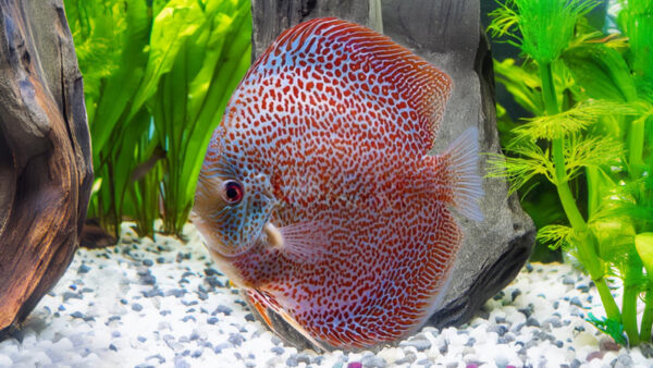 Cá dĩa beo bi High body không phải là một loài cá tự nhiên mà là loài cá được nhân giống, lai tạo với diện mạo rất đặc biệt và thu hút.